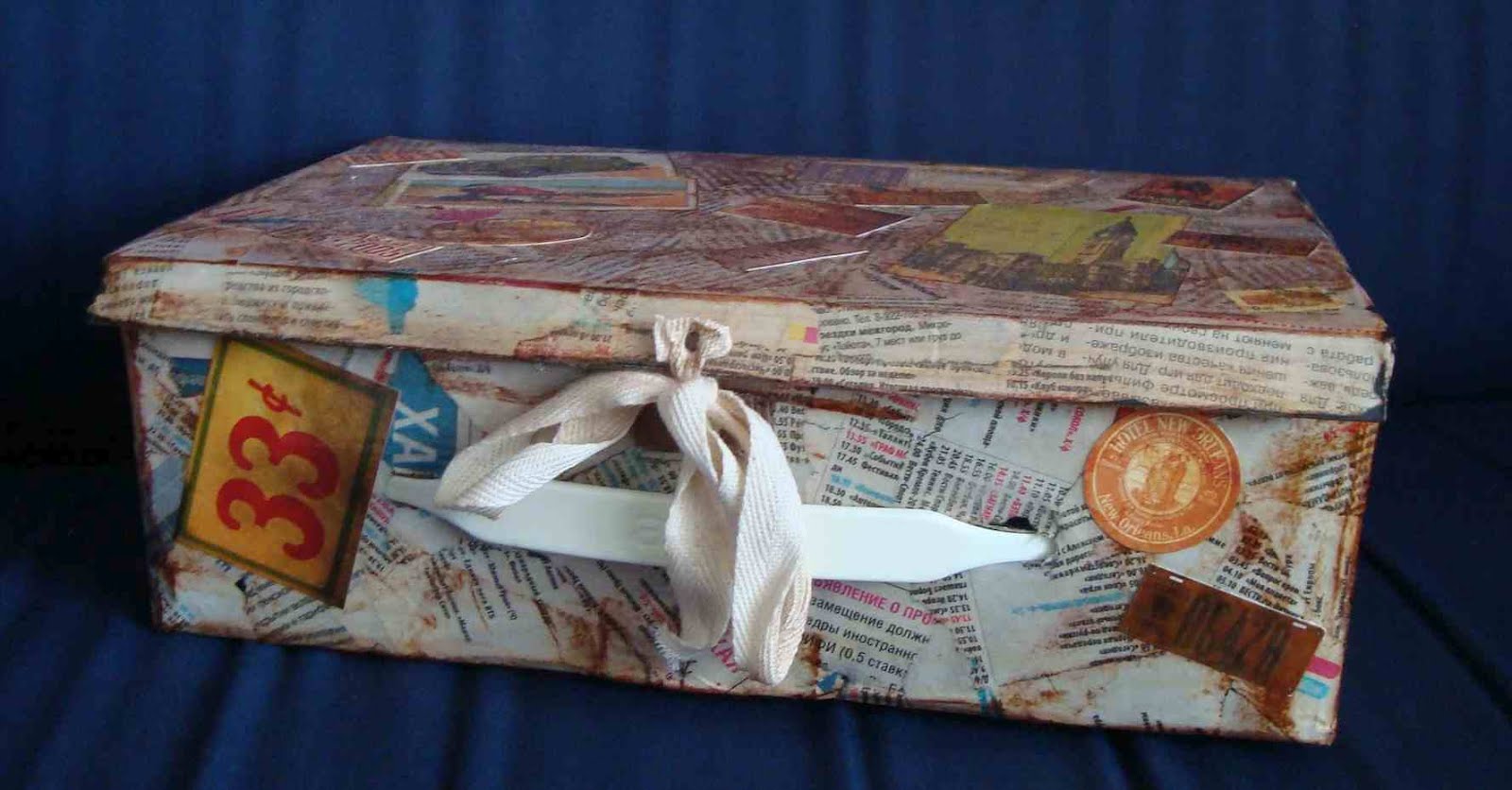 Возьмите финансовые журналы и вырезайте из них картинки с рублями (но не монеты, а только крупные купюры или пачки) и валютой, золотыми слитками. Все это пойдет на оклейку внутренней части коробки.